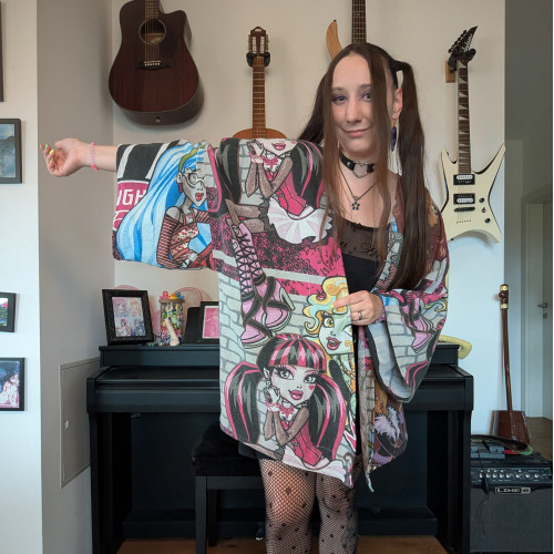 Achtung: Dieses Kleidungsstück besteht aus wiederverwendeten Stoffen. Es kann Spuren von unbekannten Materialien enthalten. Personen mit Allergien oder empfindlicher Haut sollten das Produkt vor Gebrauch sorgfältig prüfen. Nicht für Kinder unter 3 Jahren geeignet, da Kleinteile vorhanden sein könnten.